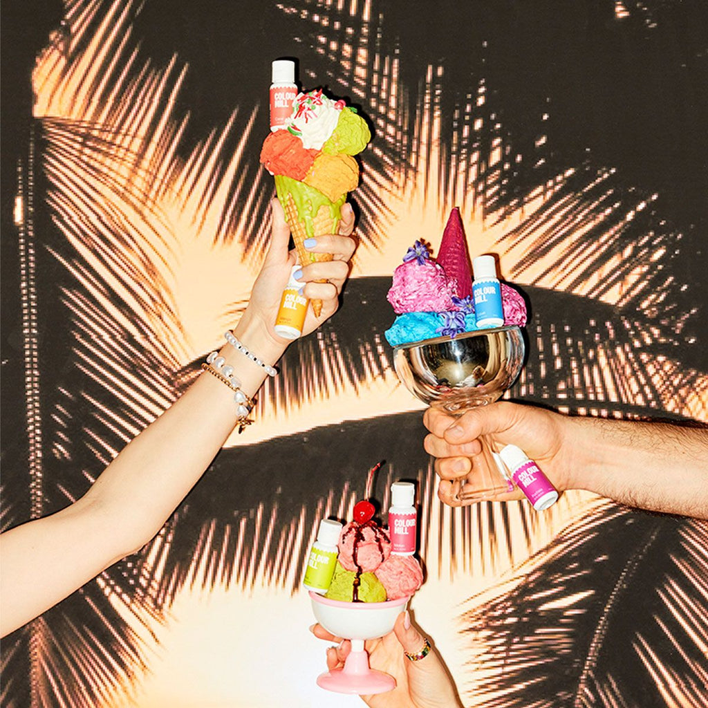 Mit dem Tropical Farben-Set auf Ölbasis von Colour Mill gelingen Dir makellose, leuchtende und wunderschöne Farben für Deine Tortenkreationen. Die Farben eignen sich zum Färben von Buttercreme, Schweizer Baiser, Schokolade, Kuchenteig, Ganache und Zuckermasse. Es funktioniert auch in Blumenpasten, Gumpaste, Modellierpasten, Marzipan, Kuchenmischungen, Gebäck, Zuckerguss, Isomalt, Spritzgel, Tortenspitzenmischungen und mehr.