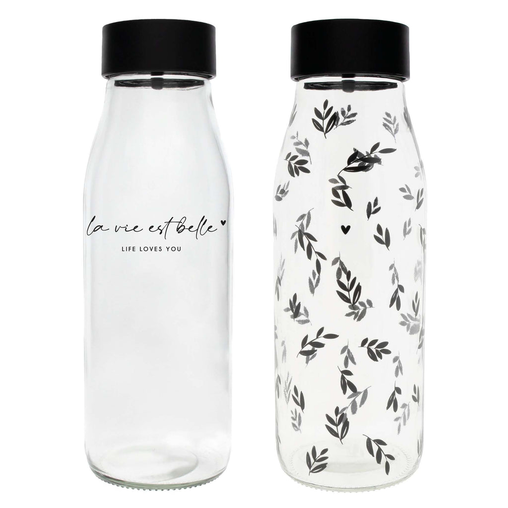 Glaskaraffe von Bastion Collections mit "La vie est belle - life loves you" Aufdruck. Der Aufdruck verschönert die Glasflasche zu einem wunderschönen Hingucker, egal ob Wasser, Saft oder Tee.