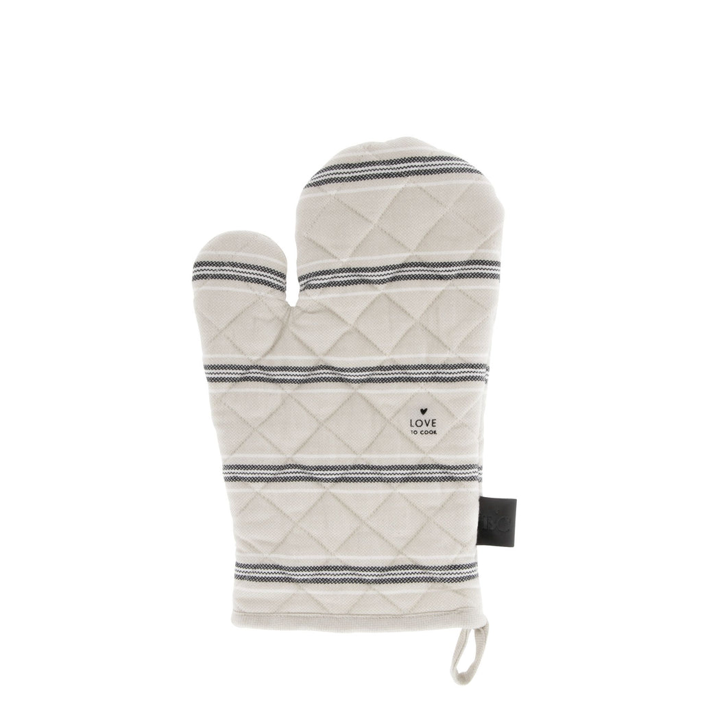 Der beige Handschuh von Bastion Collections ist der echte Hingucker. Aus schöner Baumwolle gefertigt, mit praktischem Aufhänger und Schriftzug "LOVE to cook", verschönert jede Küche.