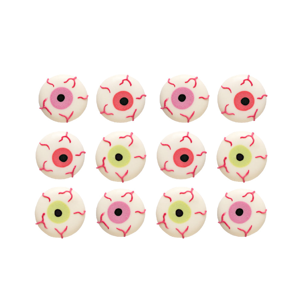 Diese handgefertigte Zuckerdekor Gruselige Augen bringt Halloween auf Deine Torten, Cupcakes, Keksen und Süssigkeiten im Nu. Gruselige Spooky Eyes aus Zucker. Du kannst die Zuckerdekor ganz einfach mit Buttercreme, Royal Icing, Schokolade oder mit dem Lebensmittelkleber befestigen.