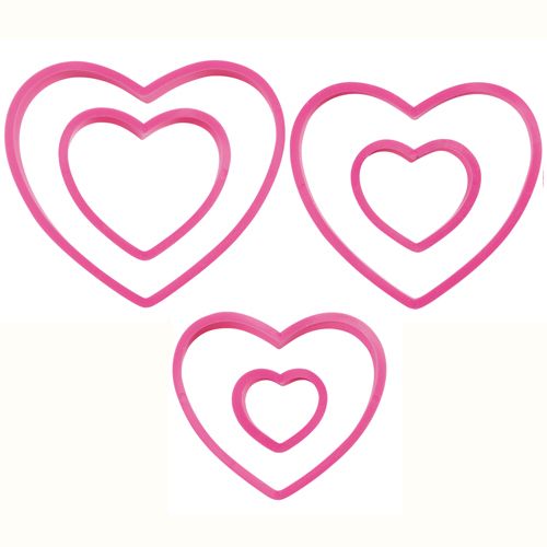Praktisches und schönes Kunststoff-Ausstechset in bezaubernder Herzform im 6er Pack. Prima für das Ausstechen von Marzipan, Fondant, Plätzchenteig, Brotteig usw.