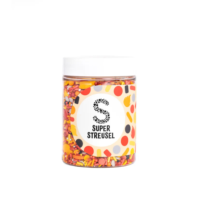 Tatütata bringt alles mit, was ein echter FeuerwehrEinsatz braucht: lodernde Flammen in Rot, Orange und Gelb, die mutig über Sahnehauben tanzen, rote und gelbe Schokokugeln, feurig rote Mini Knusperkugeln und knallbunte Konfettistreusel in Feuerwehrfarben – von AlarmRot über SirenenOrange bis zu HeldenGelb und rußigem Schwarz.