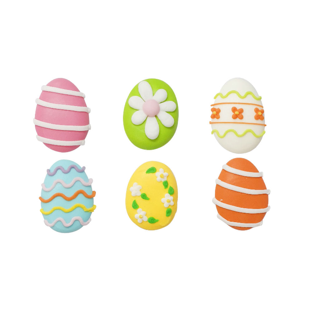 Diese Handgefertigte Zuckerdekor Ostereier verzaubern Deine Torten, Cupcakes, Keksen und Süssigkeiten im Nu. Mit natürlichen Extraktionsfarbstoffen. Du kannst die Zuckerdekor ganz einfach mit Buttercreme, Royal Icing, Schokolade oder mit dem Lebensmittelkleber befestigen. Perfekt für Ostern.