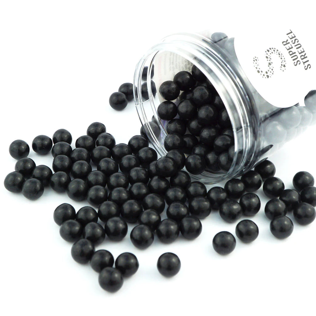 SuperStreusel Schokokugeln schwarz mit grossen Kugeln, gefüllt mit softer Schokolade sind zart und knackig gleichzeitig. Die perfekte Ergänzung für alle Deine besonderen Backwerke und Backideen.