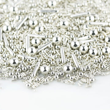 Diese SuperStreusel Mischung besteht aus soften silbrigen Silberne Zuckerstreusel, silberne Zuckerperlen, silberne Zuckersticks (die mit der Macaroni drin) und die unvergleichlich genialen Schokokugeln, genauer gesagt silberne Schokokugeln, die Du ganz soft mit naschen kannst.